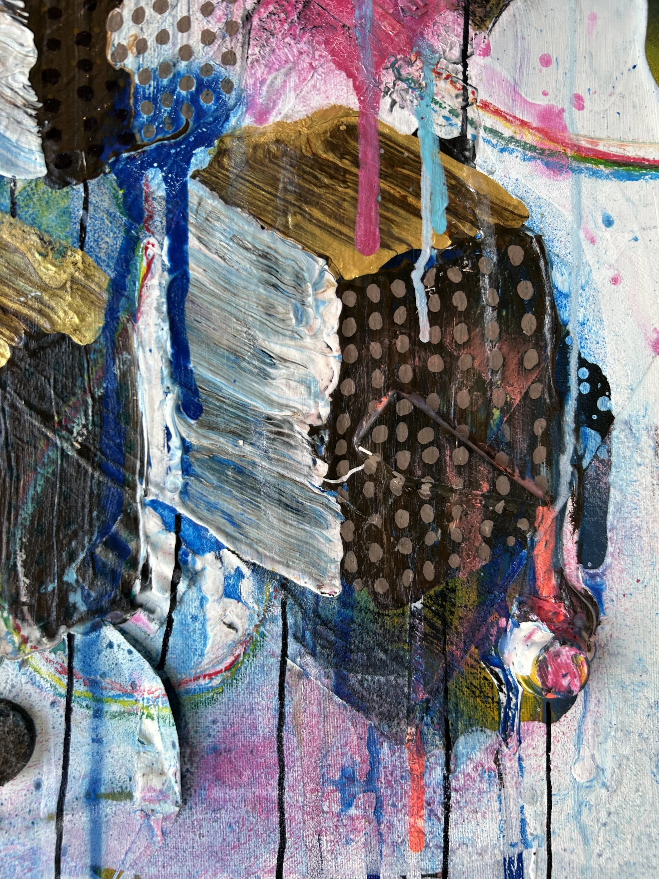 Mixed media on linnen( Acrylic, Oil pastel, marker).