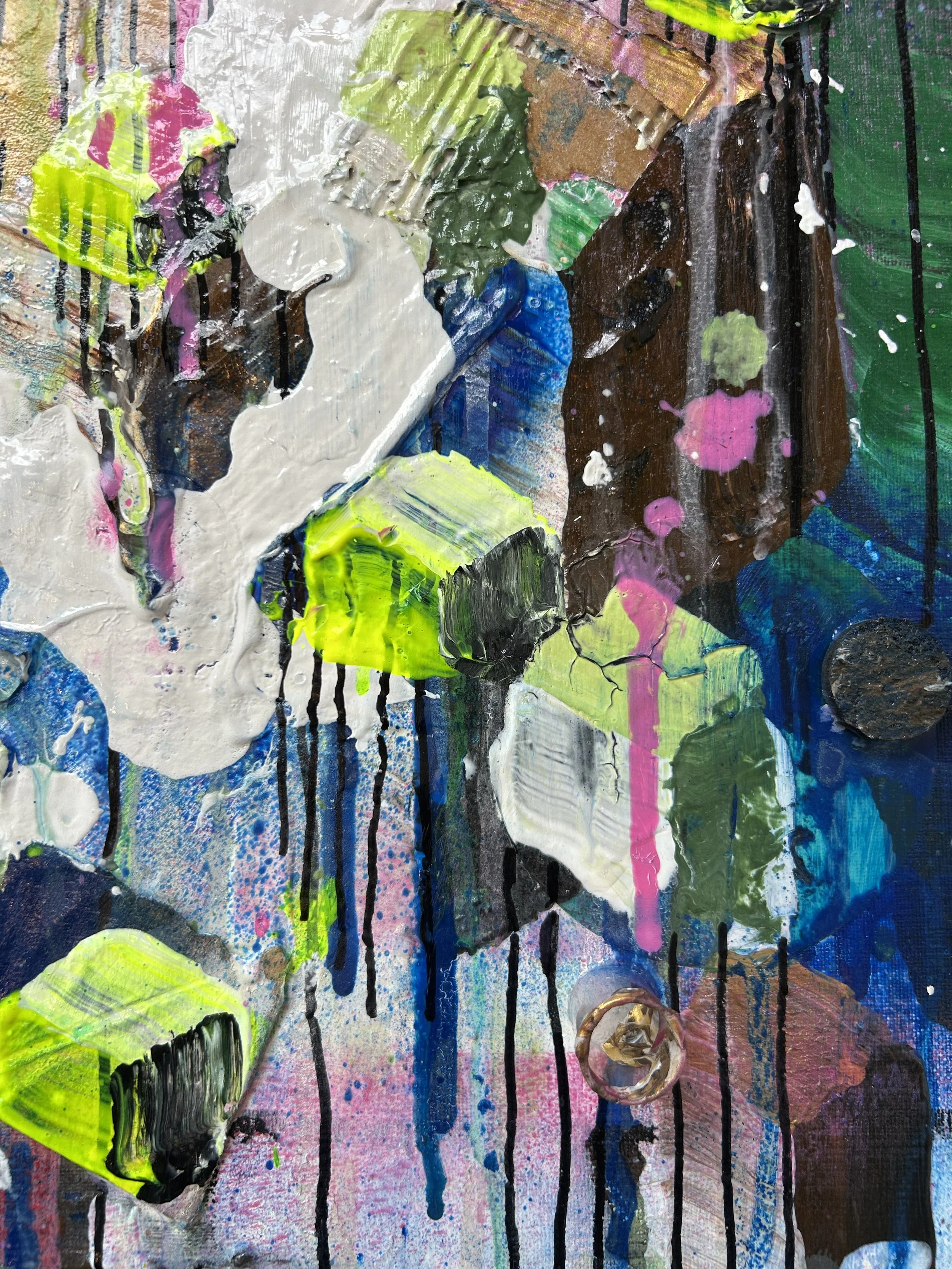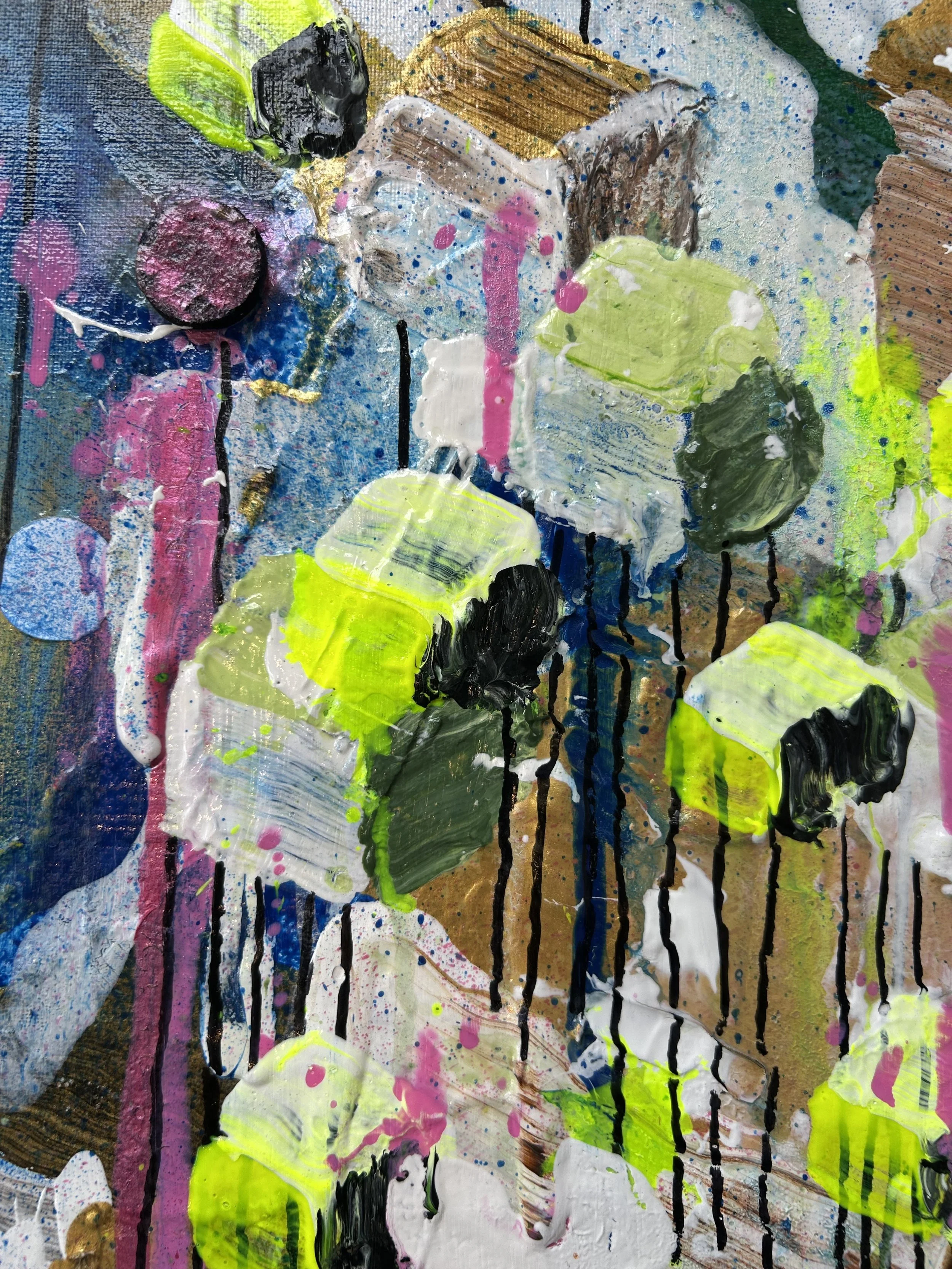 Mixed media on linnen( Acrylic, Oil pastel, marker).